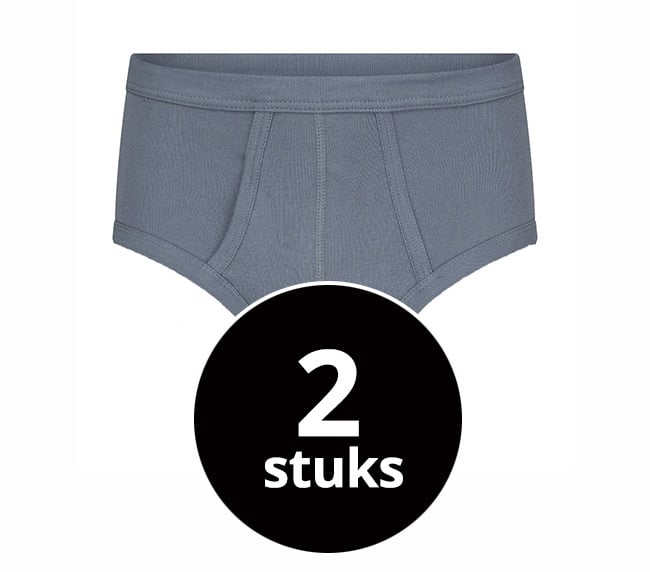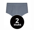 Twee klassieke heren slips met gulp gemaakt van een fijnrib. Zowel de pijpen als de taille zijn afgezet met boord met daarin een elastiek.