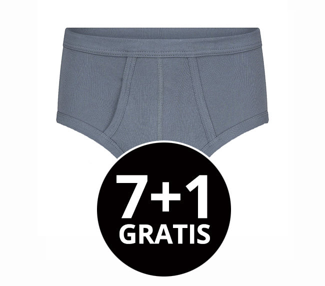 8 slips voor de prijs van 7. Klassieke heren slip met gulp gemaakt van een fijnrib. Zowel de pijpen als de taille zijn afgezet met boord met daarin een elastiek.
