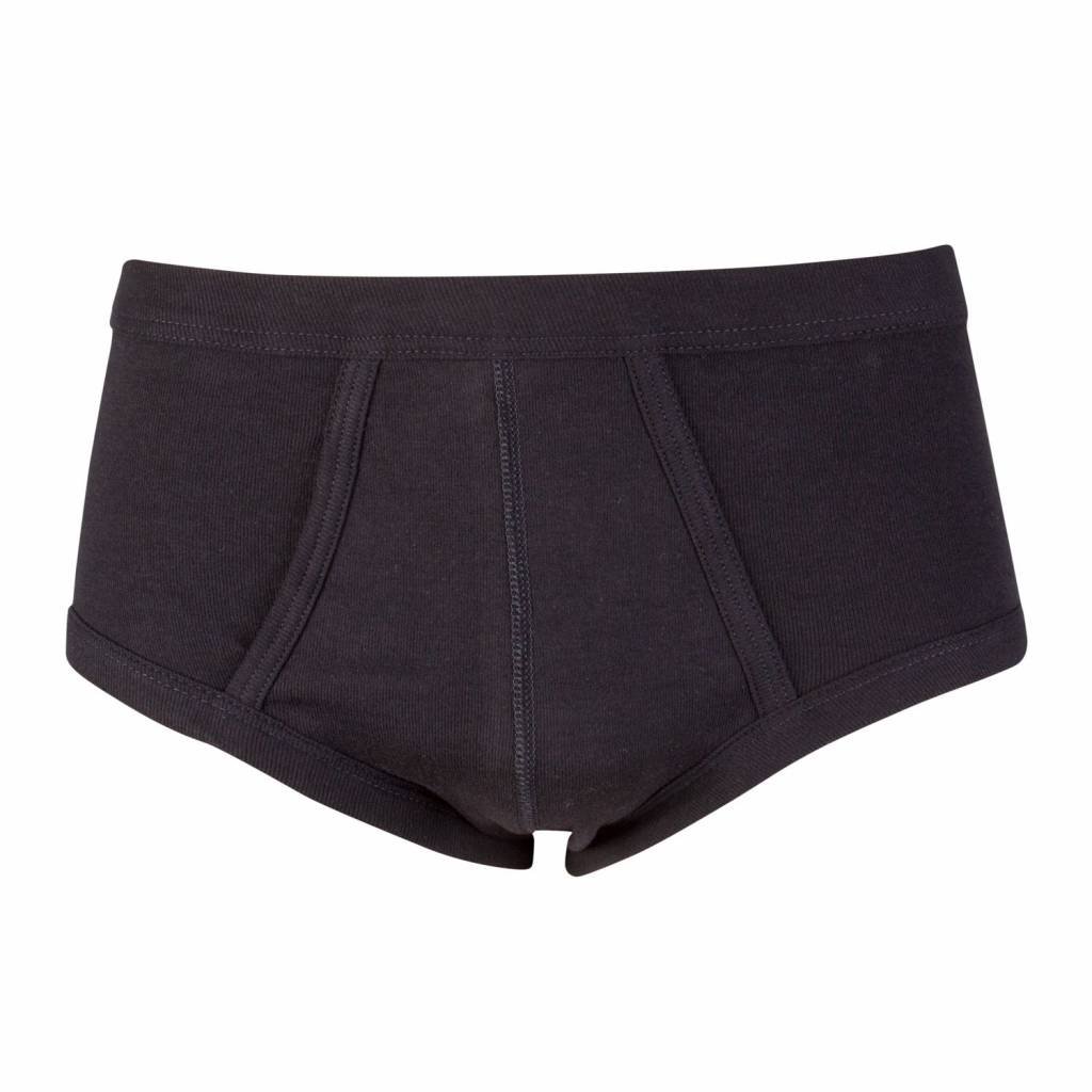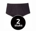 Twee klassieke heren slips met gulp gemaakt van een fijnrib. Zowel de pijpen als de taille zijn afgezet met boord met daarin een elastiek.