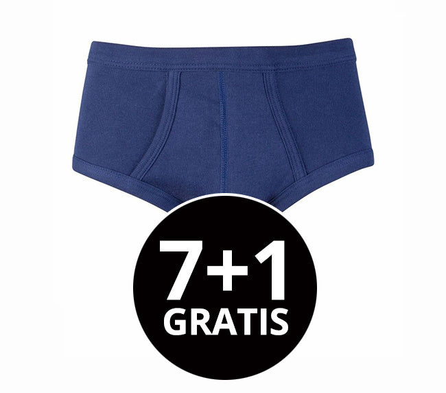 8 slips voor de prijs van 7. Klassieke heren slip met gulp gemaakt van een fijnrib. Zowel de pijpen als de taille zijn afgezet met boord met daarin een elastiek.